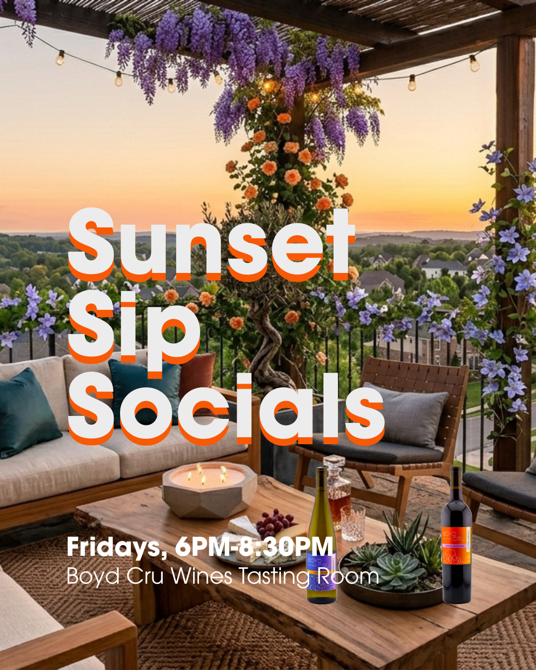 Date: Fridays, starting May 8th Time: 6PM to 8:30PM Location: Boyd Cru Wines Tasting Room
